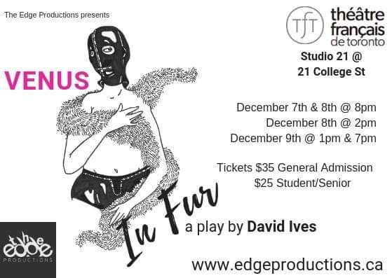 Venus in Fur opens this Thursday, with performances in Windsor November 22-24 and 29-December 2 at Shō studios on Monmouth. Evening shows are at 8pm with one Matinee on December 2 at 2pm.