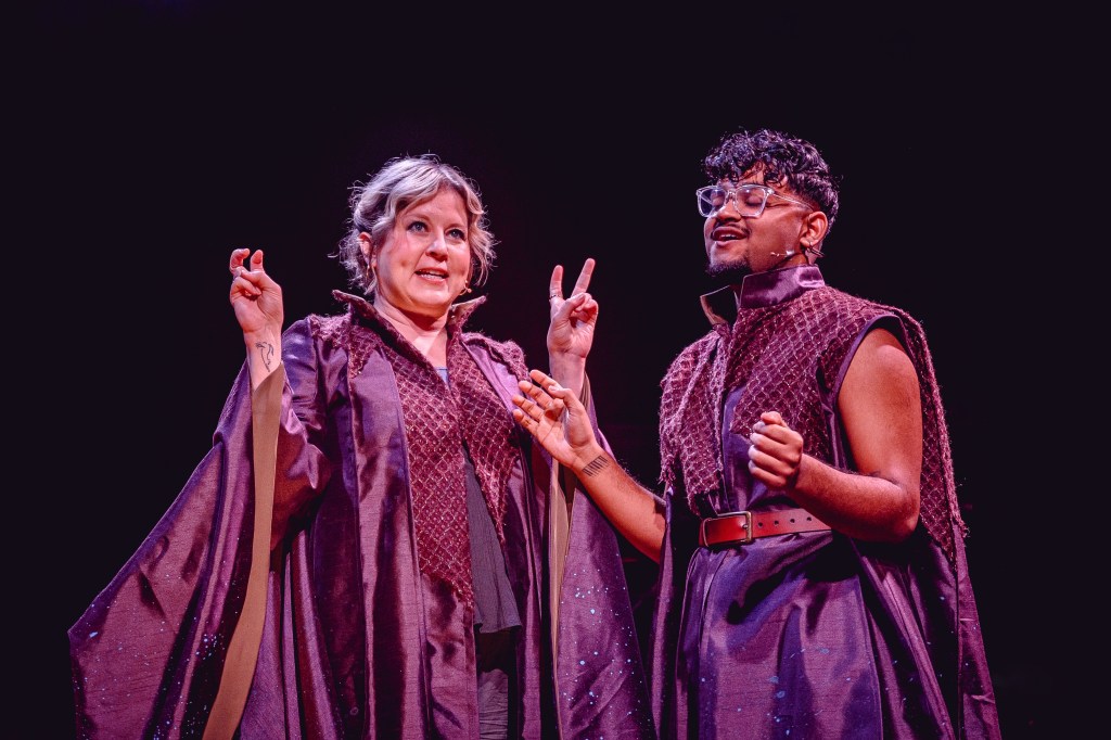 The cast of The Wild Rovers fully embodied the wonder and fantasy of the play, but there were a few stand-out performances. Sean Panting plays Maggie, the narrator and is hands down the backbone of the production. His backpack is as large as his personality, and he certainly shines in this role. Philip Goodridge’s comedic timing was fantastic, and I thought Julia Dunne’s voice was impeccable. Nicole Underhay and Melanie O’Brien certainly made the courtly aspects of the show fascinating, and Underhay was also fantastic as the Dragon. Liam Lynch certainly got the most laughs as Roguish Rick Castley; he played into the dumb-but-gorgeous guy stereotype perfectly. They certainly do look like they’re having a great deal of fun bringing this story to life!
