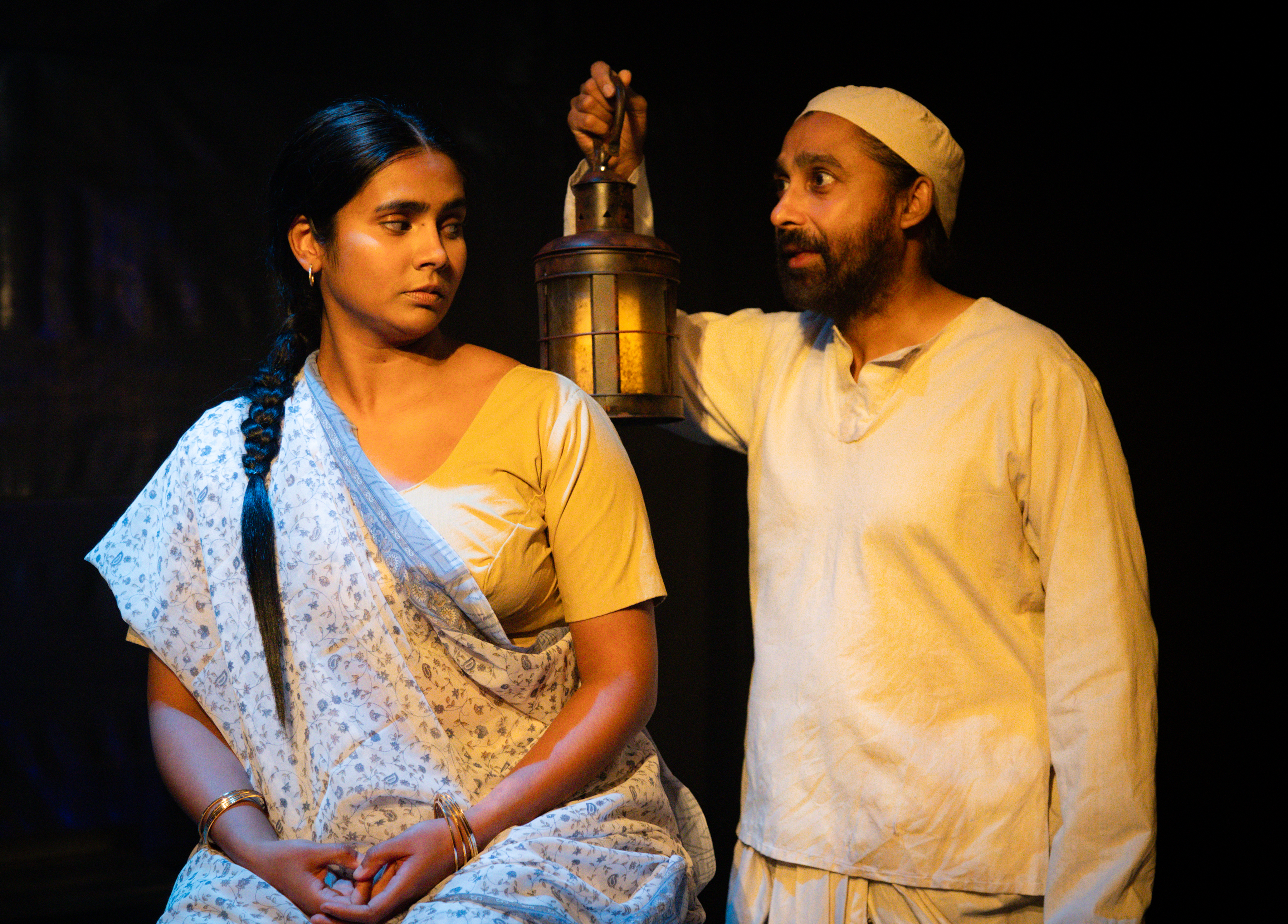 Sonja Rainey’s design of A Poem for Rabia was gorgeous. The stage with its pool of water at the front and undulating wave-like walls along side allowed the set to fit all of the locations required for the story. I also enjoyed that there were so many hidden drawers for props and chairs; you never know what surprise they’ll pull out next! Jawon Kang’s costume design was also delightful; everything from saris, to a pair of overalls I now desperately want, to outfits made to beat the heat, A Poem for Rabia is a feast for the eyes!
