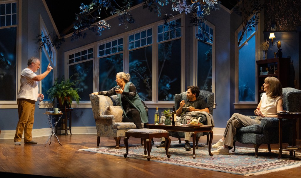 The aforementioned inhabitants are brought to life by an absolutely stellar cast. Benedict Campbell plays Arthur, an insecure yet stubborn old man who’s not quite sure if he’s “found himself” or not. Campbell gives Arthur an undeniable charm while also allowing him to create some of the most funny, and awkward, moments in the play. Nancy Palk plays Arthur’s ex-wife Janet, a kind but quite uptight woman who’s longing for something more out of life. Palk is always a joy to watch, as she brings an innate kindness and earnestness to her character. She makes Janet so loveable, and the ending of the play the moving and brilliant moment it is. Corrine Koslo’s Marion is the exact kind of slightly off-kilter old lady I aspire to become; her theories sound crazy, but she’s not wrong, either! Koslo’s comedic timing and overal vivacity make her an absolute joy to watch. Johnathan Sousa rounds out the cast as Simon, the newcomer to the neighbourhood who throws their lives into a whirl. Sousa’s talent and charisma shine through every moment he’s on stage, and he brings an appropriate air of mystery to his character.