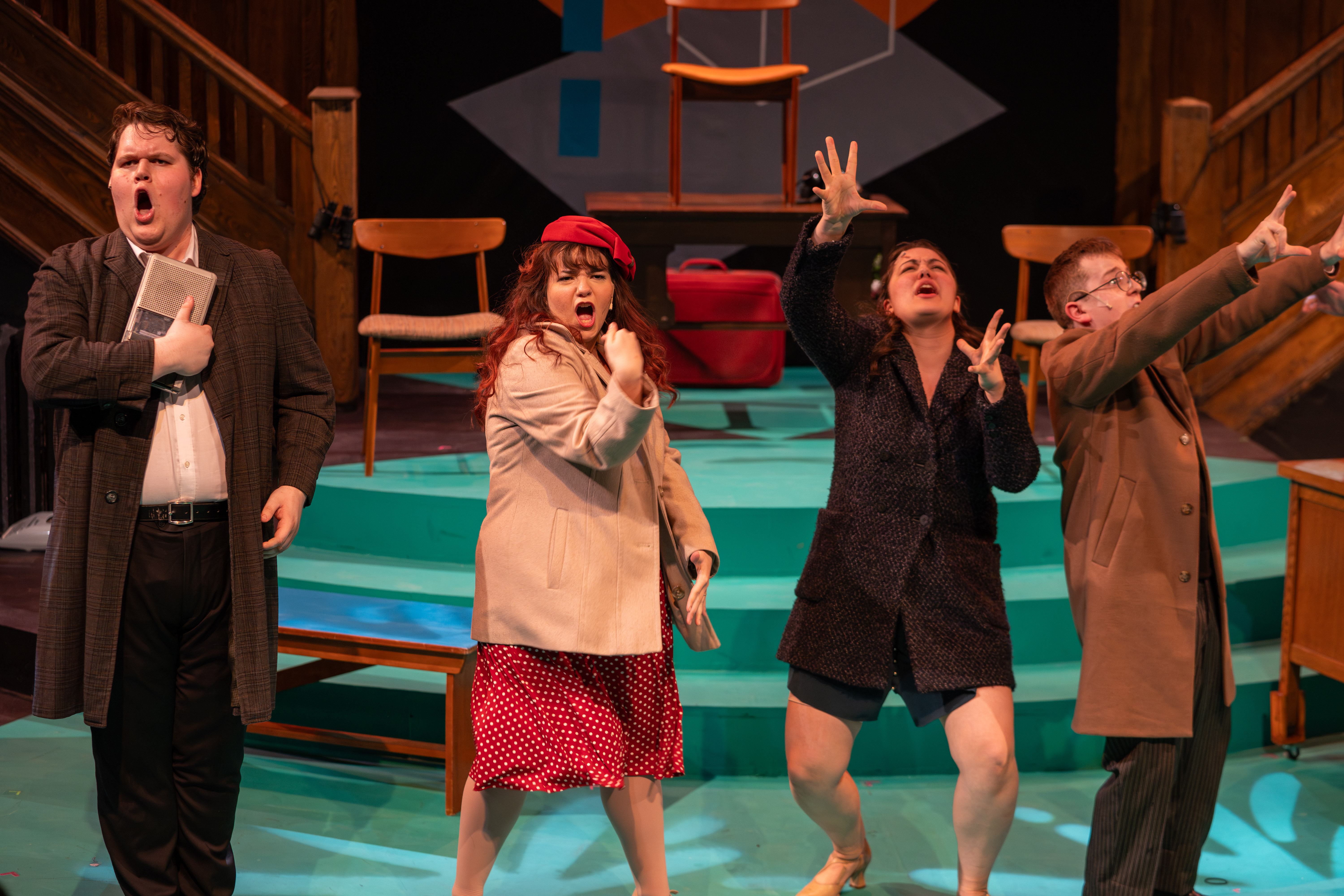 Cover Photo: From L-R: (in foreground) Colette Richardson, Duncan Lang, Jameson Mosher (in background) Mona Hillis, Jessica Rosales, Ian Kowalski. Set and prop design by Sarah Yuen, Costume Design by Pasha Bardell; Lighting Design by Jadyn Buchanan; Photo by Taylor Long.