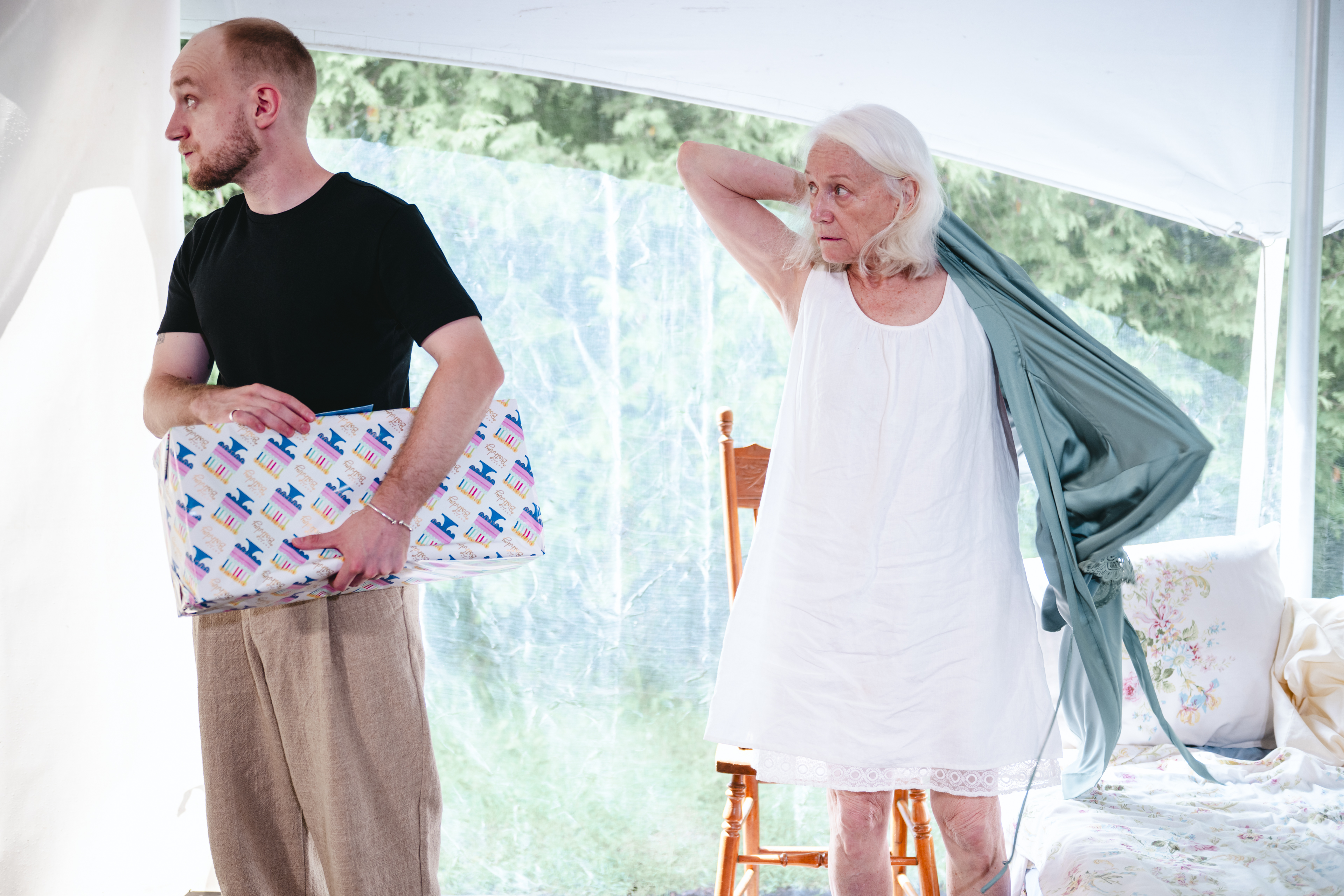 The Saviour is helmed by the incomparable Rosemary Dunsmore who delivers a riveting performance. At the beginning, the joy which emanates from her is contagious; her excitement and slight guilt about her romantic tryst the night before makes her seem like a teenager again. It makes the change we witness in her demeanour all the more profound as she not only relives parts of her trauma, but gets defensive and is cruel to her son. Playing her son Mel is Dunsmore’s actual son Robert Gerow. He brings his own incredible passion to Mel, and the tension he has on stage with Dunsmore is palpable. The pair work so incredibly well together and that familiarity certainly can be felt while they’re together. The twists and turns of this text would not have as great an impact if not for the stellar performances to accompany it, and this duo had me on the edge of my seat.