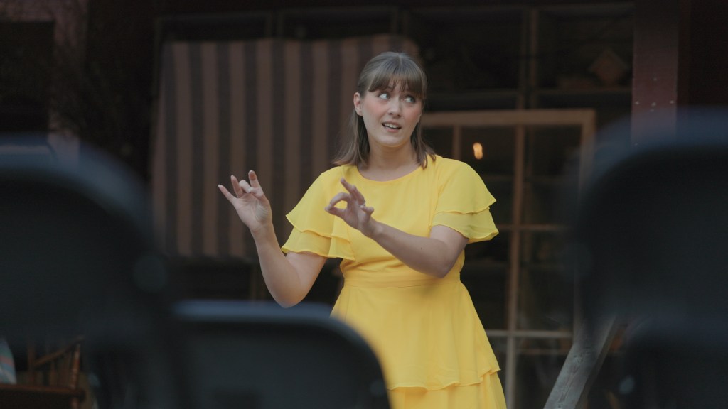 The atmosphere of Pine Farms Orchard is perfectly suited to the production. The rustic feel of not only the orchard itself but the farmhouse/storefront they use as a playing space immediately calls to mind the porches and painted houses of the East Coast. Because the play takes place is the same outdoor location (the porch of the house where Mary is the housekeeper), having the show be en plein air is perfect. Lisa Van Oorschot’s lighting design added the perfect extra ambiance to the stage both when the sun was still bright as well as during the golden hours of the end of the performance.