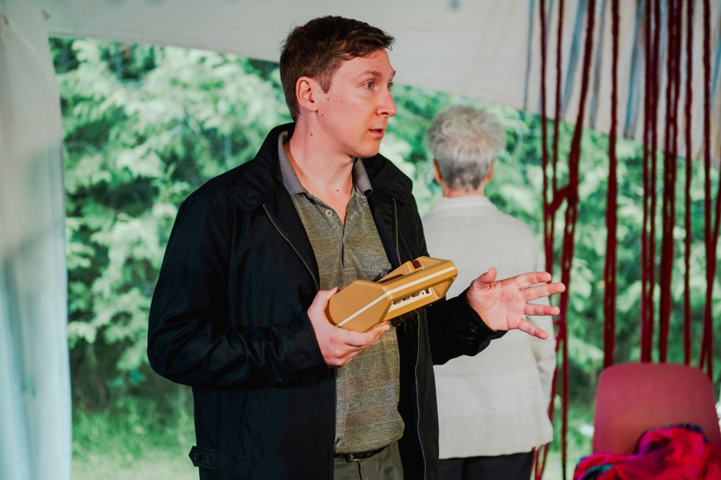 Seemingly oozing from the stage side of the tent are ropes which Patricia Reilly has carefully draped to form the background of the set. It looks like the guts of the characters are on display in more ways than one for this production. Otherwise, there are three simple chairs with both rope and chairs alike coloured a deep, iron red. Keep and eye out for the mail delivery system throughout the play, the ingenuity is absolutely delightful. The atmosphere created by the design could not be better suited to Lederer’s text.