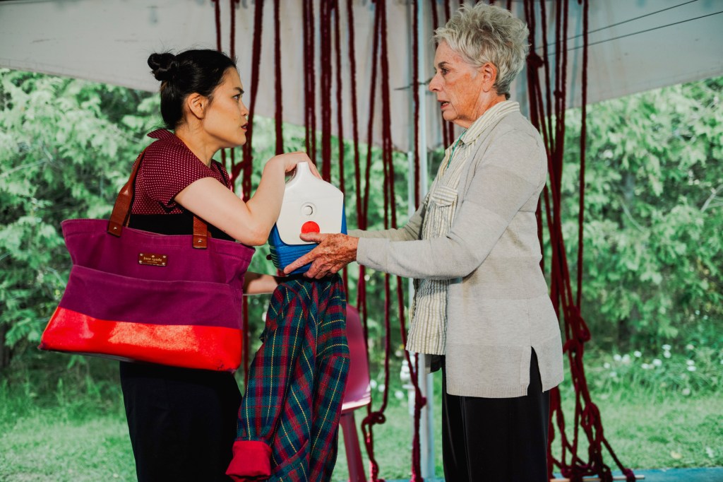 With Love and a Major Organ, aside from having the most adorable title, is a heartwarming story about love in its several forms. Lederer employs different narrative styles to tell the stories of Mona, her son George, and Anabel, a girl George meets on the subway. Mona (Kate Lynch), who starts the play with a “once upon a time” style bedtime story, has always tried to protect her son from having his heart shattered the same way she had done by his father. George (Nicholas Santillo) likes routine, physical newspapers (usually yesterday’s which he’s retrieved from his mother’s house), and his job where he types and clicks on occasion. Anabel (Loretta Yu) loves recording poetical letters on cassette tapes, her purple plaid jacket, and sudoku. As the lives of these characters weave in and out of one another, they also change, grow, begin to fall sleep, and awaken in their own turns.