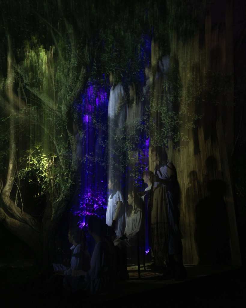 Black Creek Pioneer village has been transformed into Romania’s Hoia Baicu for SAMCA. As the days are growing shorter, the sun has almost fully set as the audience takes their seats for the play to commence. Franco Pang’s lighting design dances amongst the foliage, helping to create the dynamic tension which permeates the play. While the primary action takes place in a more traditional outdoor theatre set-up, eventually we move deeper into the grounds, safely following the players as they lead us to the end of the story. This is immersive theatre at its best; every element of the play thrives in the environment they’ve created, and it feels almost impossible to imagine it in an indoor space.