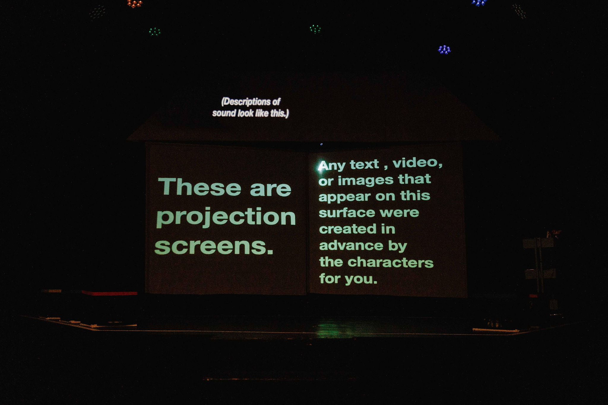 The design team of I Don’t Even Miss You has pulled out all the stops for this visually spectacular show. Tori Morrison’s sound and video design take centre stage as Belyea performs several original pieces throughout the play, as well as being immersed in an impressive soundscape. Even Gilchrist’s set design is functional and meaningful in equal measure; with three screens shaped like a house, the projections become another storyteller within the play. The captions, designed by Lauren Acheson, David Gagnon, and Mac Brock, which are automatically provided are a lovely accessibility feature while also being art in and of themselves.