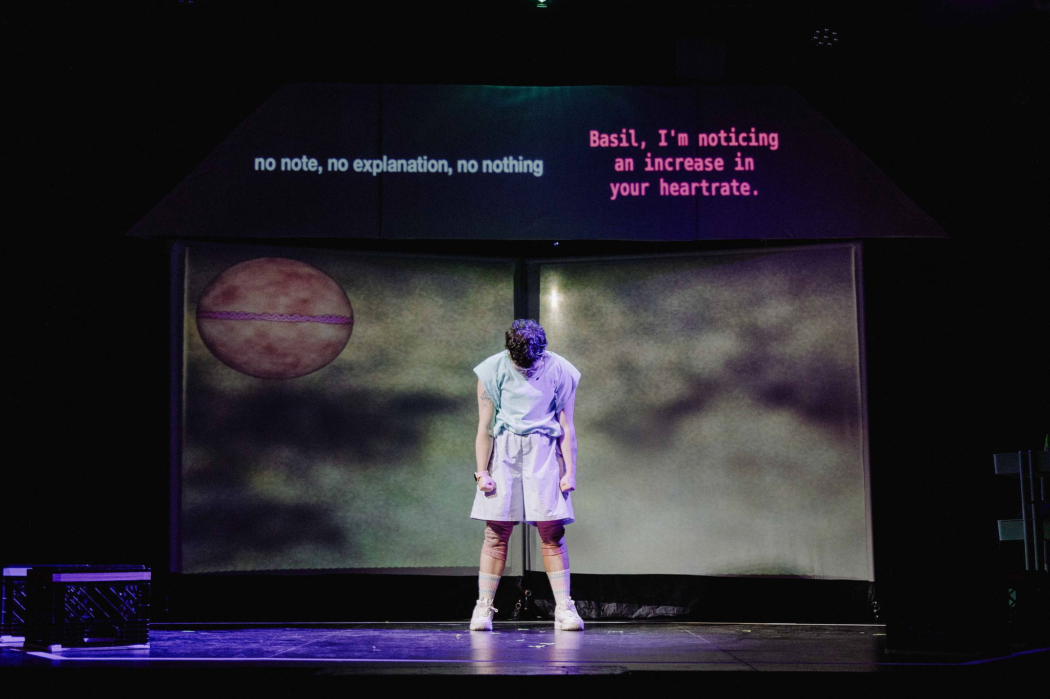 However, the other side to this story is a beautiful queer coming-of-age tale. Basil tells us all about their childhood, their early crushes, and coming out. Thankfully, Basil has a supportive family, so these memories are joyous ones. Yet once those family members, and the rest of society, has been taken away, Basil is left to wonder how much of themselves actually needs to change now. They talk about how they had considered surgeries in the past, yet now they’re more comfortable in their own skin with no one watching or judging them. Showing self-acceptance and gender euphoria on stage is wildly important as we move towards a more understanding society.