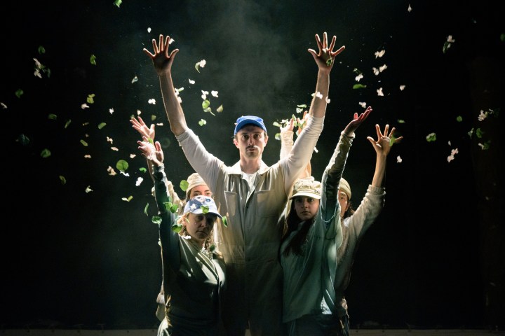 The other element which makes this production unique, winning them the Ray Ferris Innovation and Sustainability Grant, is the up-cycled, or borrowed items used in the play. It gives a whimsical quality to everything – like the way children can make the most simple of boxes into something more extraordinary. Hopefully this marks a more conscious move towards sustainable theatre practices; to be able to create vivid images and exciting worlds doesn’t have to mean shiny new objects. Part of the joy in this production is seeing what everything’s made out of and how they’re going to put it to use in the scene. It brings an extra level of creativity to what they’ve made and the evidence of that ingenuity is felt throughout the show.