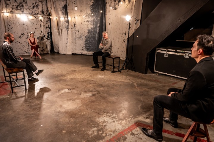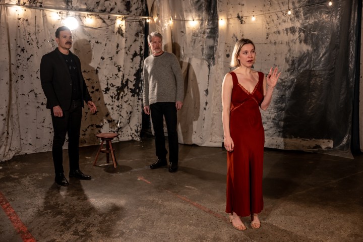 Have you ever seen a scene in a movie where they’re trying to get a dog to decide which owner it likes best? The set the dog in the middle of the room while the two contenders call to it, seeing whose call will make the dog yield. John, the central figure of Mike Bartlett’s Cock, is the dog in this scenario. He’s fallen for two people, and both are trying to claim John as their own. Directed by Dylan Trowbridge, this immersive experience puts you in the heart of the tension, both sexual and emotional.