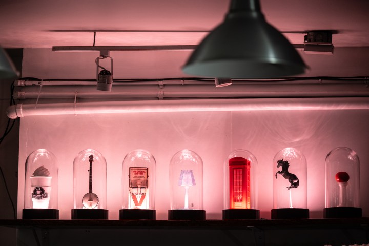 Morning Parade Coffee Bar is the perfect setting for Performance Review, this quaint coffee shop in a funky area of the city creates an intimate and welcoming atmosphere from the beginning. The programs are formatted like menus, with the title on the front in a fancy font and the essential information inside. The back of the program shows depictions of the only imported set piece: a set of 7 items each under their own tall glass dome, which are lit from underneath. Every item represents a different story, and therefore a different job, which has impacted Small’s life. These physical representations of the important moments in her life create a little museum of their own, not unlike the ones she visits in her story.