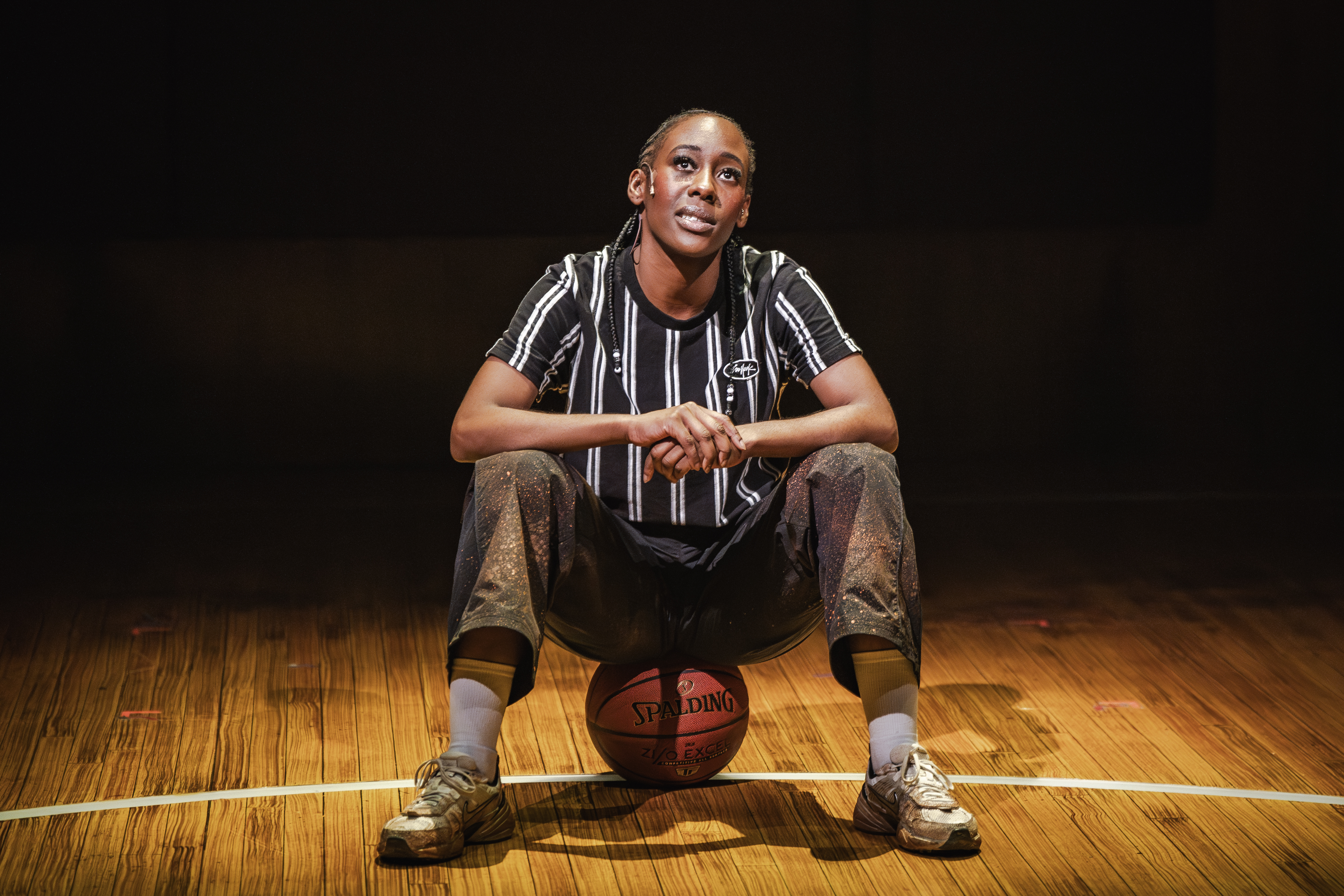 Ken Mackenzie’s incredible set design defies expectations – taking the gymnasium we know and giving it a larger-than-life theatrical treatment. The court is split in half, with one key on the floor while the other comprises the back wall of the playing space. Mats line the lower portion of that wall with gym bags on the benches below. A tricolour net hangs from a dirty backboard, embodying the outdoor dirt court and standard gym courts the team plays on. Combined with Radha Javanfar’s lighting design, the Guloien Theatre becomes full of life, light, and the excitement that can only come from a great basketball game.