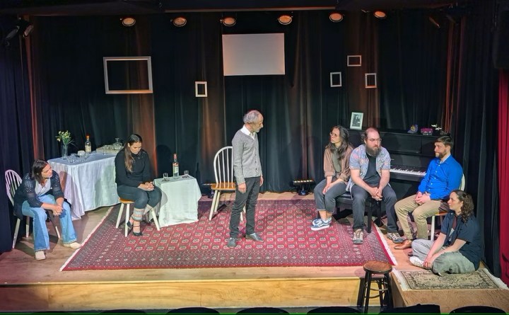 Cover Photo: From Left to Right – Jada Rifkin (Pickles), Kiana Woo (Sonia), Scott McCulloch (The Professor), Sean Jacklin (Dr. Aster), Hayden Finkelshtain (Vanya), Hilary Adams (Ella), and Lisa Norton (Babs). Photo by Outliers Theatre Collective.