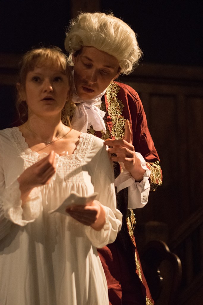 I want to give a quick shout-out to the Intimacy Coordinator for this production, Lizzie Moffat (who is also a member of the cast). For a show like Dangerous Liaisons where there are several sensual and sexual scenes depicted, with varying levels of consent involved, having an Intimacy Coordinator is absolutely essential. It’s odd now to think about a time where this crucial element of the rehearsal and staging process would have not been involved; this ensures such safety and trust between the actors while also allowing for everything to still have that tantalizing feel to it.