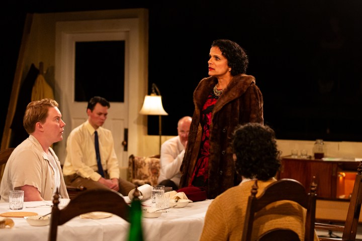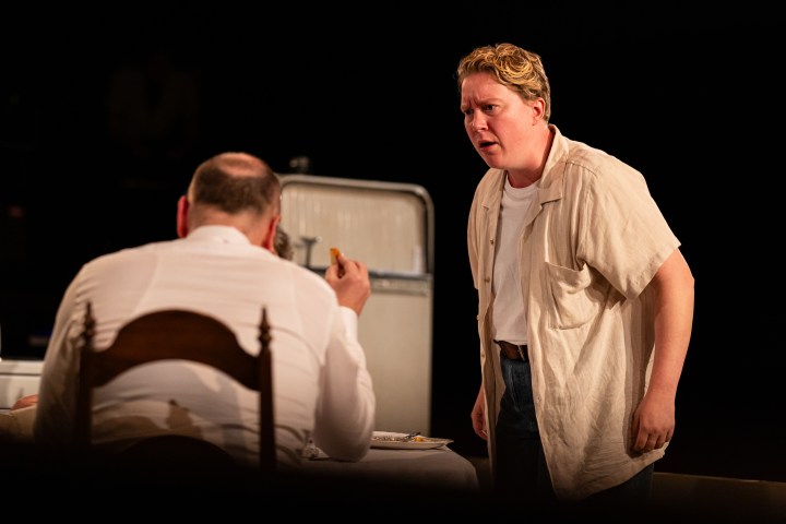 The cast of Leaving Home is a stellar ensemble. Shelley Thompson plays Mary; her warmth and kindness radiate through every moment of her performance. Andrew Musselman’s portrayal of Jacob is heartrending and exasperating. Musselman clearly gives his all in this performance, creating fear and pity mere moments apart. Lou Campbell’s Ben is fierce and troubled, and Campbell gives a nuanced and emotional performance. Sam Vigneault’s Billy is quiet and indecisive, the total opposite of his brother and father. Abby Weisbrot’s Kathy is feisty and sure of herself; an interesting match for Billy. Weisbrot brings a beautiful vulnerability to Kathy that’ll break your heart. Sharpen Kalayil’s Minnie is forward and almost vulgar; her character feels out of place in the Mercer home. Kalayil gives her a charisma which makes it easy to understand how Jacob was in love with her. Sébastien Labelle plays Minnie’s new boy-toy Harold, and he doesn’t say a single word. Labelle is perfection, imparting everything we need to know about Harold just through his facial expressions.