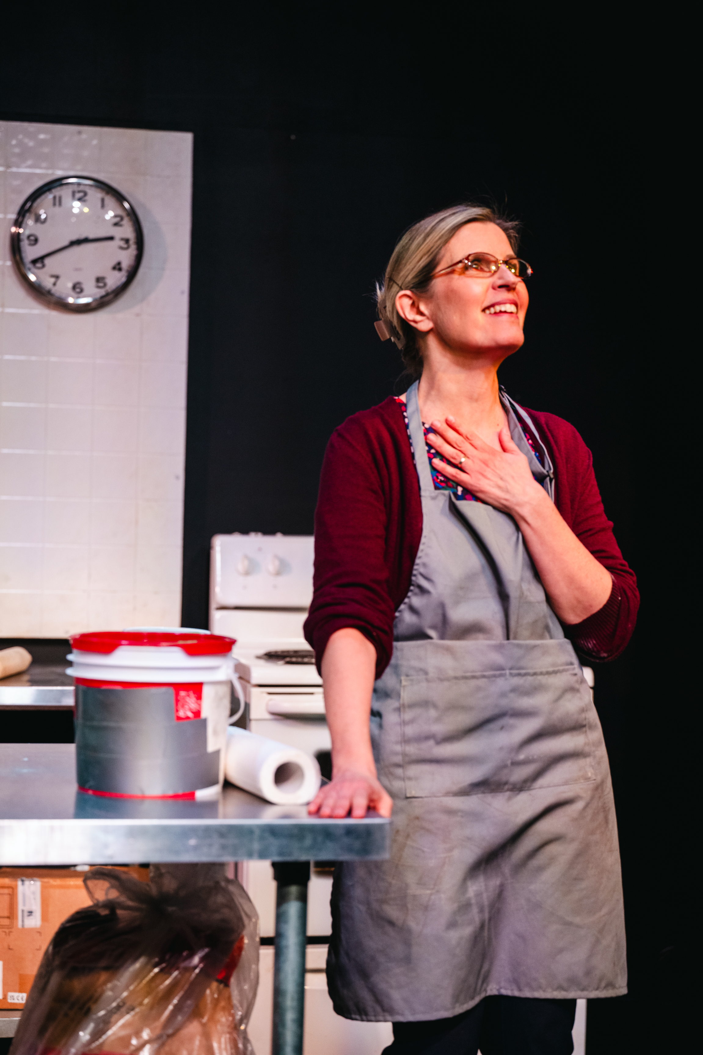 Apples in Winter is a stunning solo-show where Miriam has been asked to bake a pie for her son, Robert. He’s on death row, and he’s requested a slice of his mother’s apple pie for his last meal. Unfortunately, this means that Miriam has to go to the penitentiary to bake the pie, lest she try to slip something into it at home. Over the course of making the pie, Miriam talks about Robert’s growing up, her own childhood, and how she started making pies. Throughout, we get more information about how Robert ended up in prison, and what it’s been like for Miriam while on the outside. From the media camping on her lawn to hate letters from total strangers, Miriam’s life was also irrevocably changed on that night in 2010.