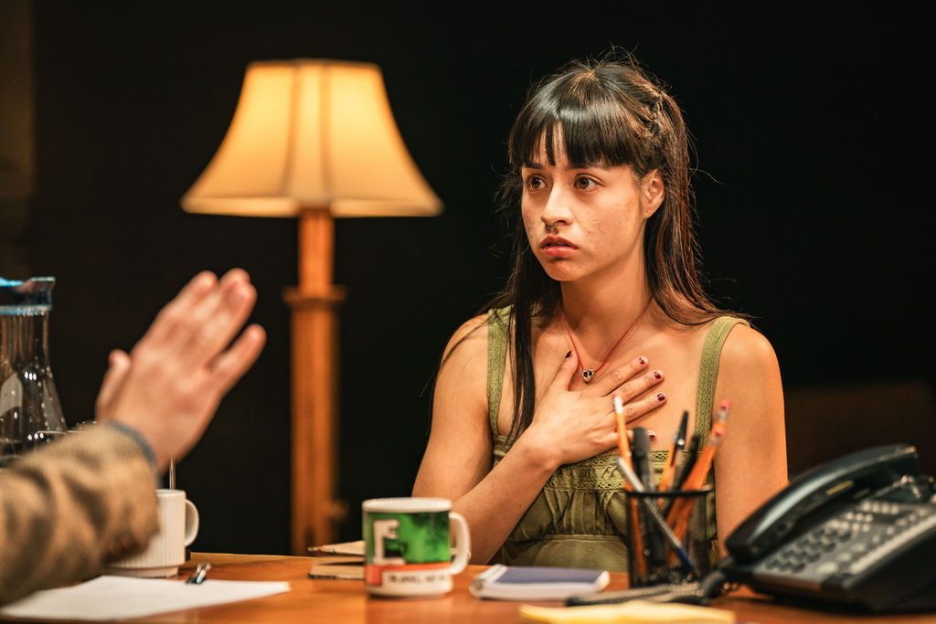 The other interesting choice for this production is the casting. Though both performers are talented and handle the text well, their closeness in age takes away a good deal of the tension and power dynamics within the play. The professor should be much older than the student, thus enhancing both his power over her, but also the sense that he should know better than to be doing what he’s doing. Even if they’re maybe further apart in age than is detectable by sight, there still should be a significant difference in age between the two characters to help reinforce Mamet’s text.