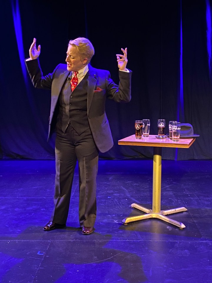 MacDonald seems to wear Hale like she wears her perfectly tailored pinstripe suit; you can tell that there’s a sense of coming home with this character. Their accent is also spot on and gives that main character a unique voice compared to the other folks Hale imitates as she tells her story. MacDonald commands the space with their undeniable stage presence and conversational tone, you feel like you could stay and listen to these stories indefinitely.