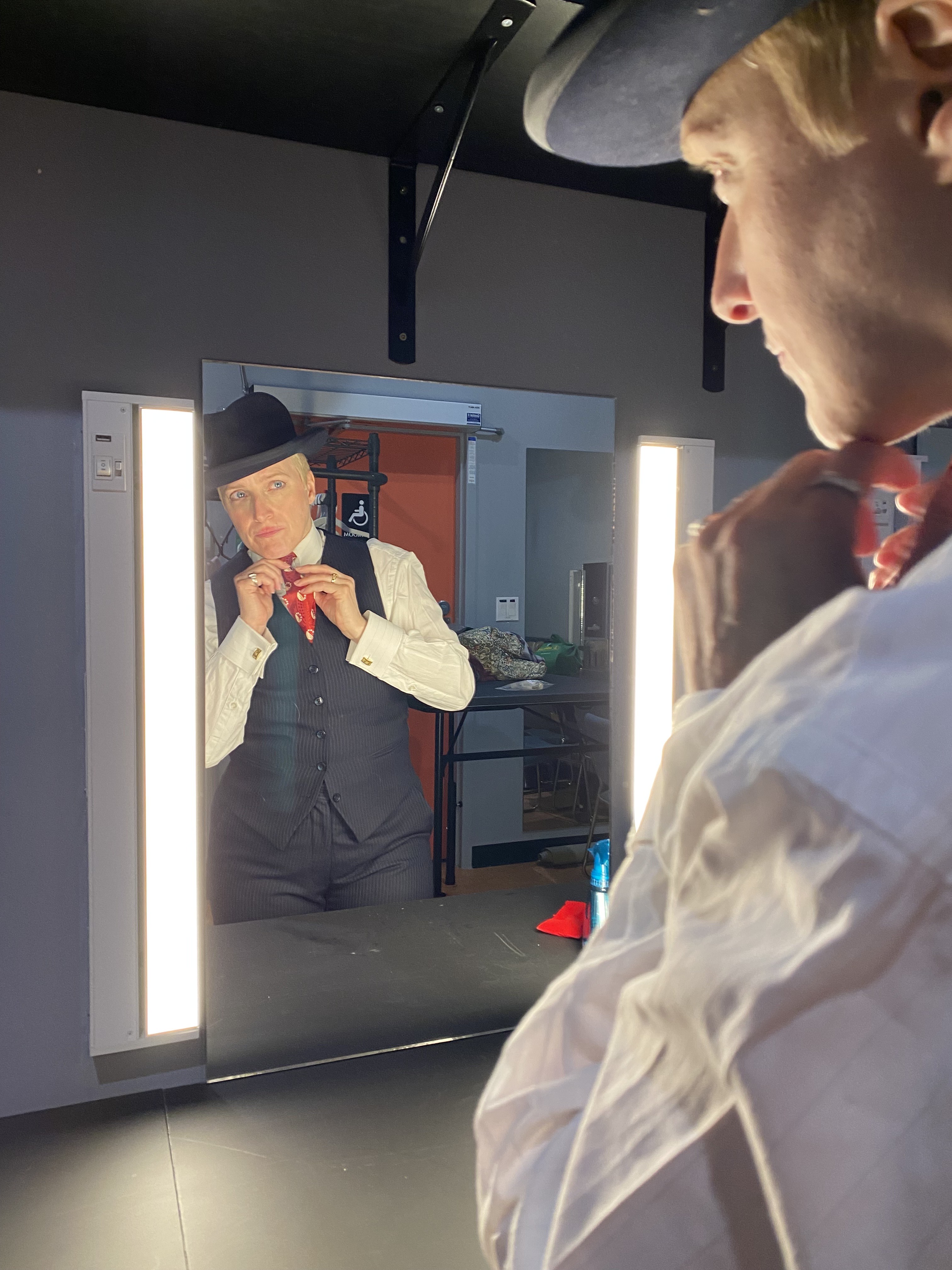 MacDonald seems to wear Hale like she wears her perfectly tailored pinstripe suit; you can tell that there’s a sense of coming home with this character. Their accent is also spot on and gives that main character a unique voice compared to the other folks Hale imitates as she tells her story. MacDonald commands the space with their undeniable stage presence and conversational tone, you feel like you could stay and listen to these stories indefinitely.