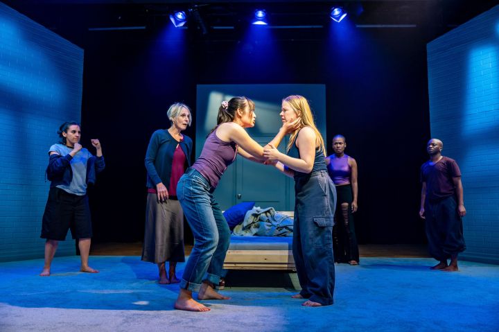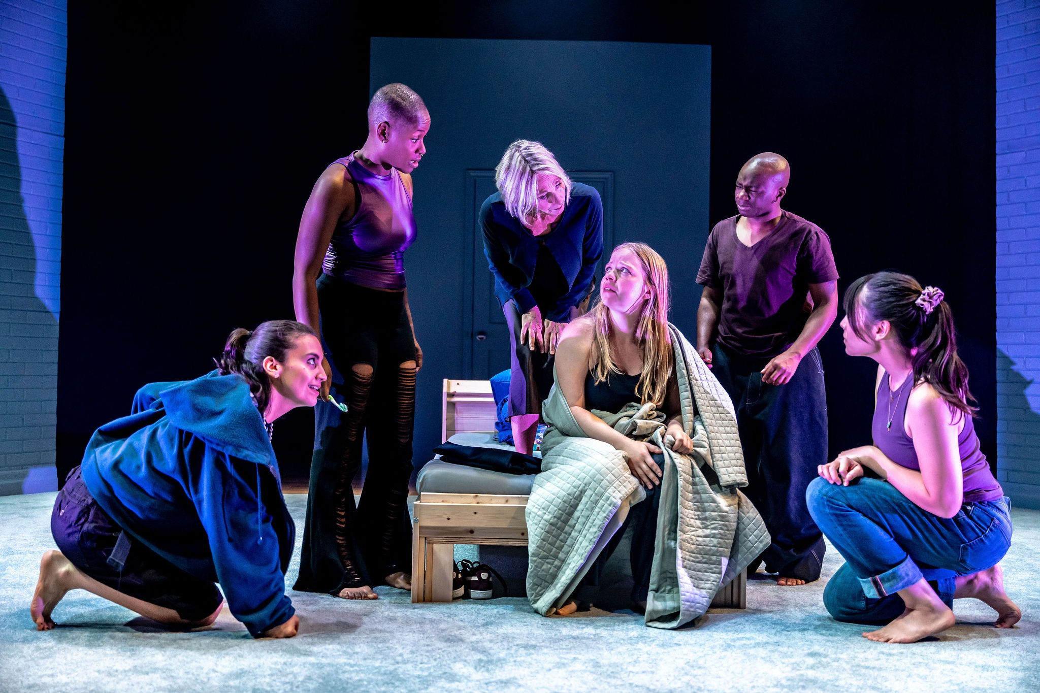 Vivien Endicott-Douglas helms the cast as Vic. She gives a truly tour-de-force performance which left me speechless. Liz Der’s Ward lives up to her name, and Der gives her character a conviction and presence which is impossible to ignore. Philippa Domville gives an energetic and emotional performance as Lull. Domville’s performances always give the feeling like she’s truly going all out, and this is no exception. Bria McLaughlin’s Ago is a beautiful tribute to the younger self which lives inside us. I loved the spirit which McLaughlin brings to this role. Sofía Rodríguez’s Grind is the most ferocious of the group; they give their character such passion and gusto which Vic definitely needs. Emerjade Simms’ Sham brings the party to Vic’s consciousness and the vitality to boot! Though it was difficult to watch someone get left hanging that many times without being able to intervene. Finally, Marta Armstrong is an adorable Daisy; her sweetness is a clear reminder of the inner child we should all be nurturing.
