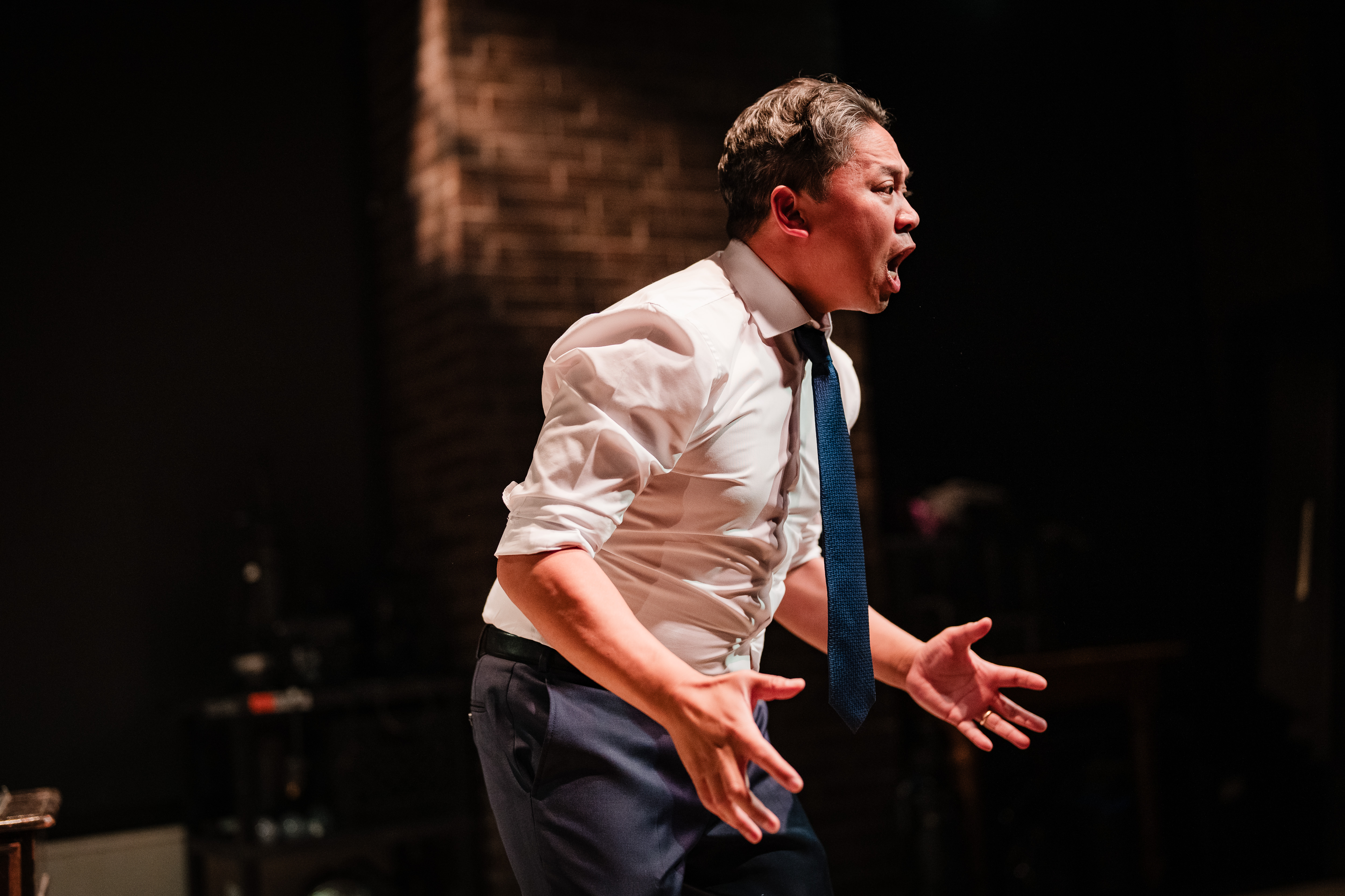 Then there’s the performance itself. Byron Abalos is mind-blowing; he keeps us in his grasp until long after he’s left the theatre. He deftly embodies the passion, fear, and ambition of this character, and in such a way where you slowly but surely begin to feel for this man. Learning his lesson in the most harsh ways possible, this modern Dr. Faustus likewise shows us the cost of ambition.
