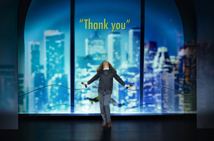 Truly nothing was off-limits for Drucker and Milligan, with simple names like Big City and Small Town for the locales and picking the common threads from many of the films to create this one. I loved that the main character’s name is Holly Mark, with her mother obviously then being Merry, and her love interest is named Mark Hall; it’s so silly and yet so perfect. However I also love that the only gay character was a side-kick for the villain (the lack of queer representation in those movies has been noted for years), and that the father who’s been absent happens to have a more North-Pole Centric job. These tropes are the basis upon which these films have gained both popularity and notoriety. And this is clearly reflected in the audience’s reactions to the show; the laughter is contagious and you can tell that there are many folks who are getting the inside jokes.