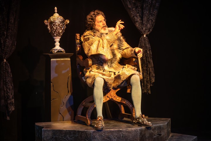 Witch walks in two worlds; with modern text but Jacobean costuming, it is of this time and not all at once – a conundrum in and of itself. Yet this is also a pointed reminder of how little things have changed. These characters are speaking their truth for their time while also speaking directly to us now. For example, Cuddy’s insistence that Morris dancing is not just his hobby, but his life’s work is the same protestations anyone who has ever wanted to work in the arts made to their families. Though the modern slang is initially jarring, we easily settle into it as the play progresses, and it makes for moments of levity to hear someone from the 17th Century saying things like “keeping it on the dl” as casually (or at least as casually as Cuddy is capable of being) as one would today.