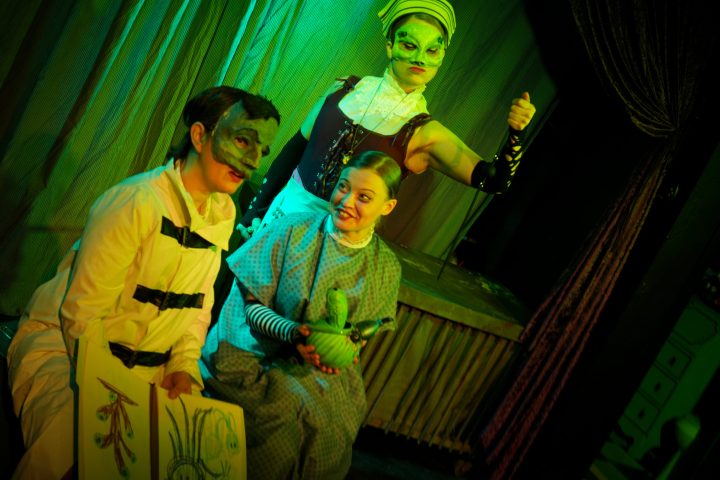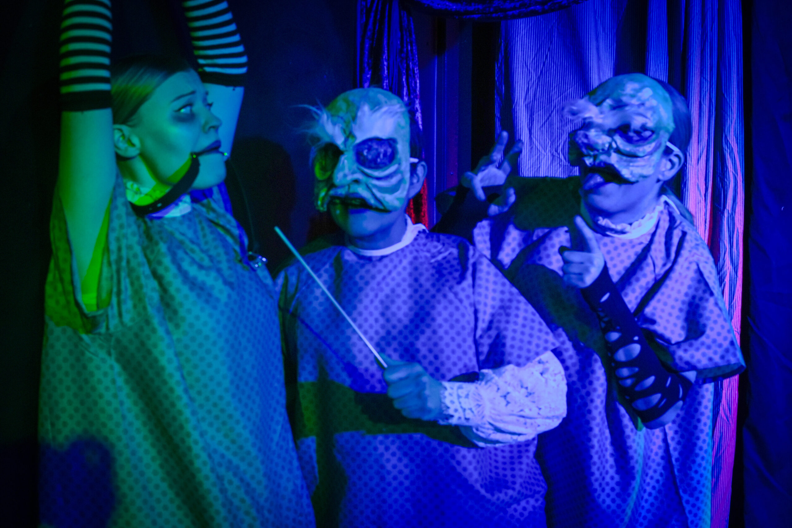 Jeanie Calleja, Pip Dwyer, and Natalia Bushnik are the charismatic chorus bringing Night at the Grand Guignol back from the dead. Playing everything from aged insane asylum patients, to naughty nurses, mad scientists to murderous circus hobos, these three performers do it all. They deftly navigate their way through their multiple characters and scene changes, making every moment feel like it’s a part of the evening’s eerie spectacle. I think the “Orgy at the Lighthouse” story is my favourite, as all three actors give such funny and unexpected performances, and the story takes so many twists and turns. This truly stellar cast brings Woolfe’s vision to life with passion you can feel throughout the production.