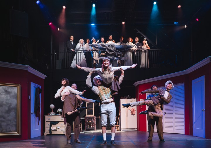 The Company of The Drowsy Chaperone. Set Design by Jessica Balyk, Lighting Design by Jay Hines, Costume Design by Gabe Woo. Photo by Taylor Long.
