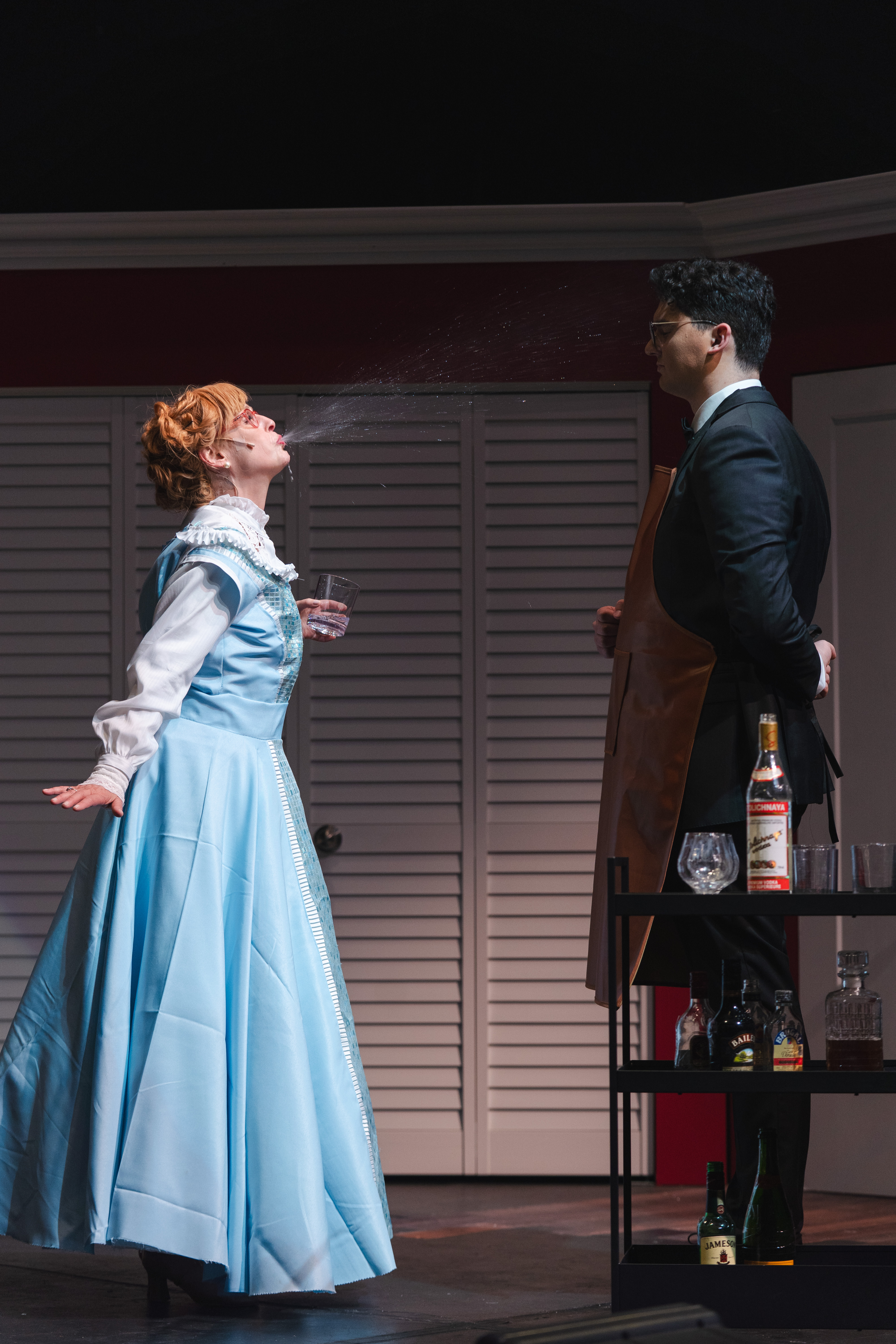 From L-R: Jill Louise Leger and Aiden Robert Bruce in The Drowsy Chaperone. Set Design by Jessica Balyk, Lighting Design by Jay Hines, Costume Design by Gabe Woo. Photo by Taylor Long.