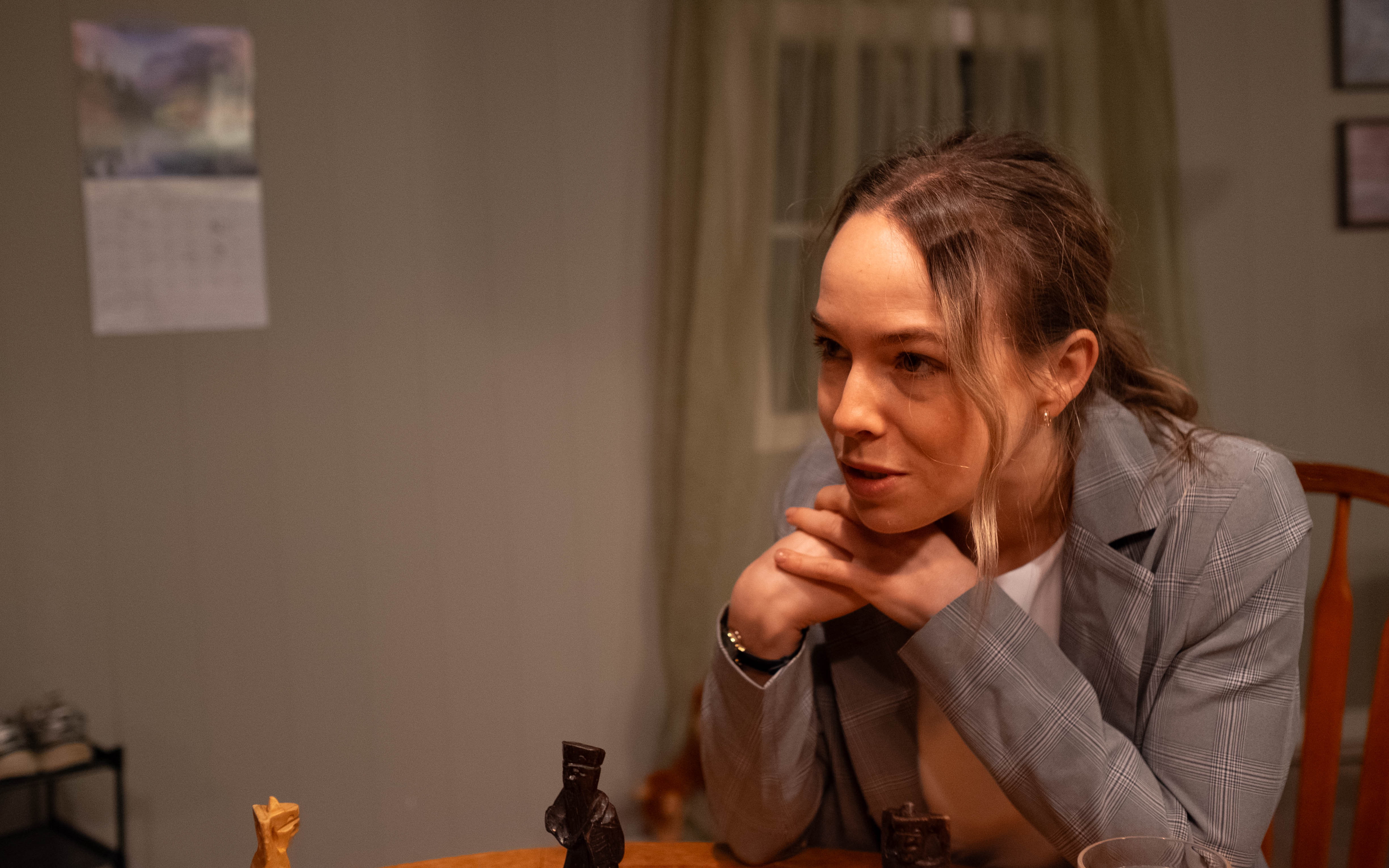 Liz is away at a work conference and the week is just wrapping up. She comes back to her Air BnB to find her hostess, Joy, waiting for her. You can cut the tension between the two of them with a knife, although Liz can’t seem to figure out why. She knows they partied together the night before, but she also doesn’t remember what time she went to bed, or truthfully very much after they began to play chess together. Joy remembers tho…and she has proof. As the two attempt to finish their game of chess, they come to realize that the real game is happening with their words, not the pieces on the board.
