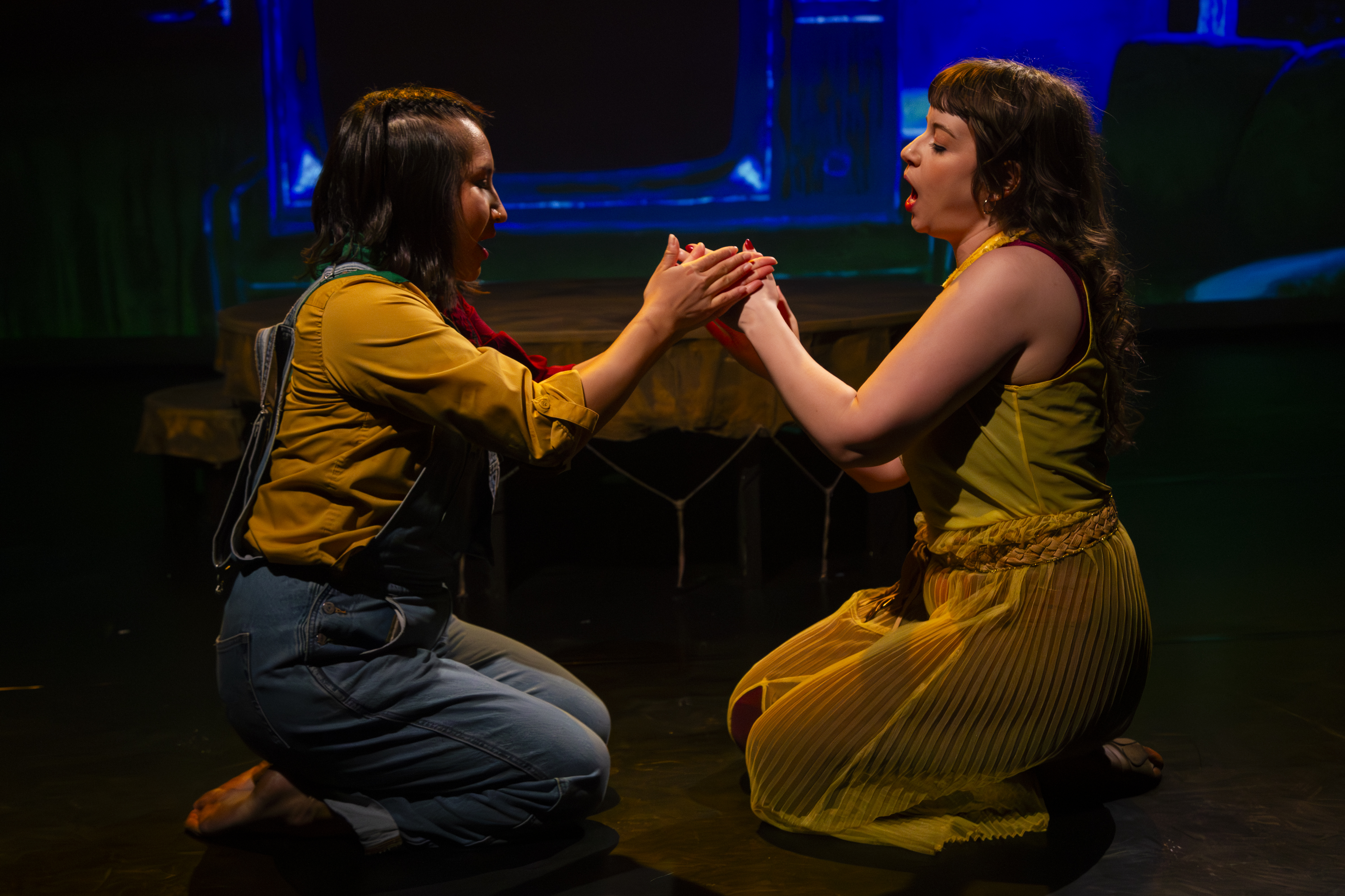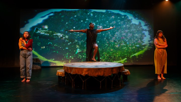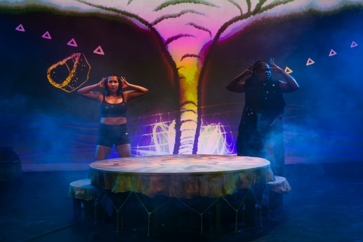 Ferderber is making her Toronto theatre debut as Miskozi, and she gives a vulnerable yet energetic performance. I don’t know if it was simply opening night jitters, but unfortunately Ferderber felt a little unprepared, making a few obvious slips throughout the show. However, I have full faith that her performances will only get better as the run continues! Ravyn Wngz brings an element of sass and fabulousness to Ziibi. Ziibi is a grounding force in the play, and Wngz deftly embodies that spirit. Elizabeth Staples’ Waabishkizi is hilarious, clearly taking on the stereotypes of white women, while also providing a foil for Ferderber’s Miskozi.