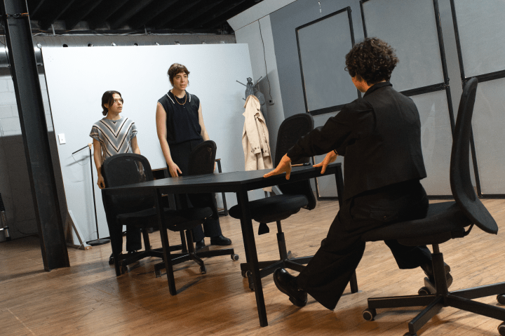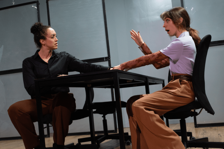 Hope Goudsward as Guildenstern, Madeleine Storms as Rosencrantz, Gabbi Kosmidis